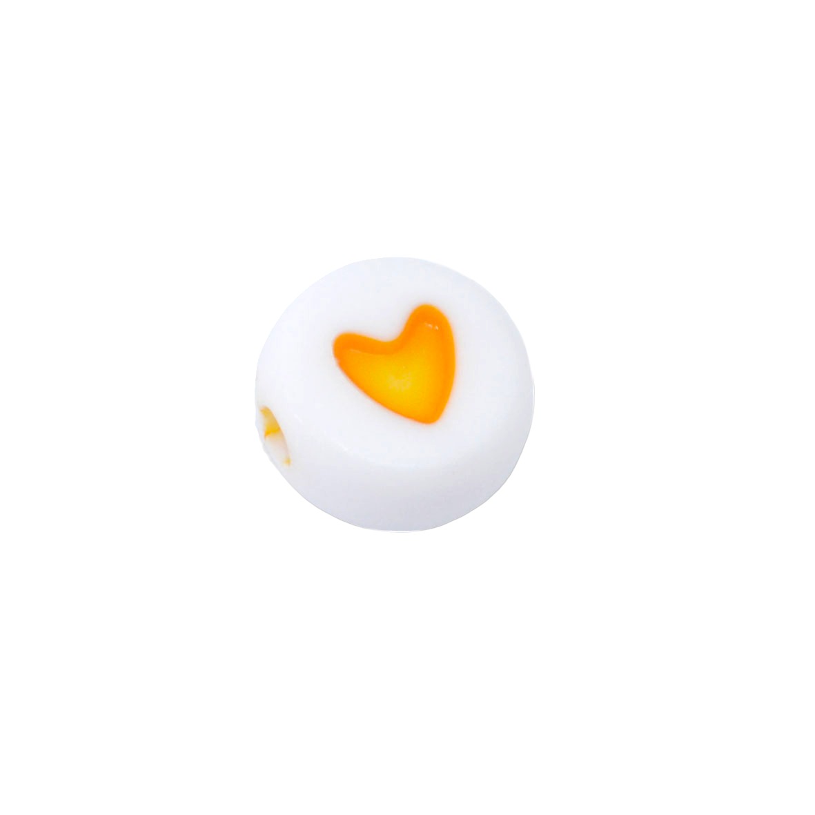 Witte/gele ronde acryl kraal met hart (7 mm)
