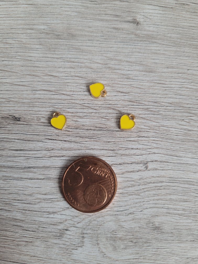 Gele/goudkleurige bedel – hart (7 x 8 mm)