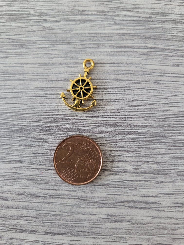 Goudkleurige bedel – anker & stuur (14 x 21 mm)