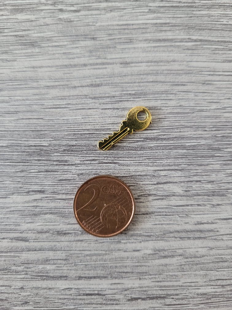 Goudkleurige bedel – sleutel (7 x 19 mm)