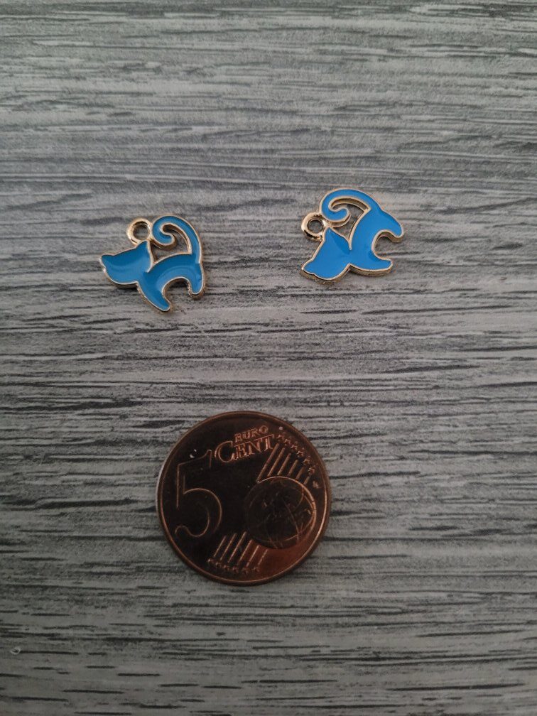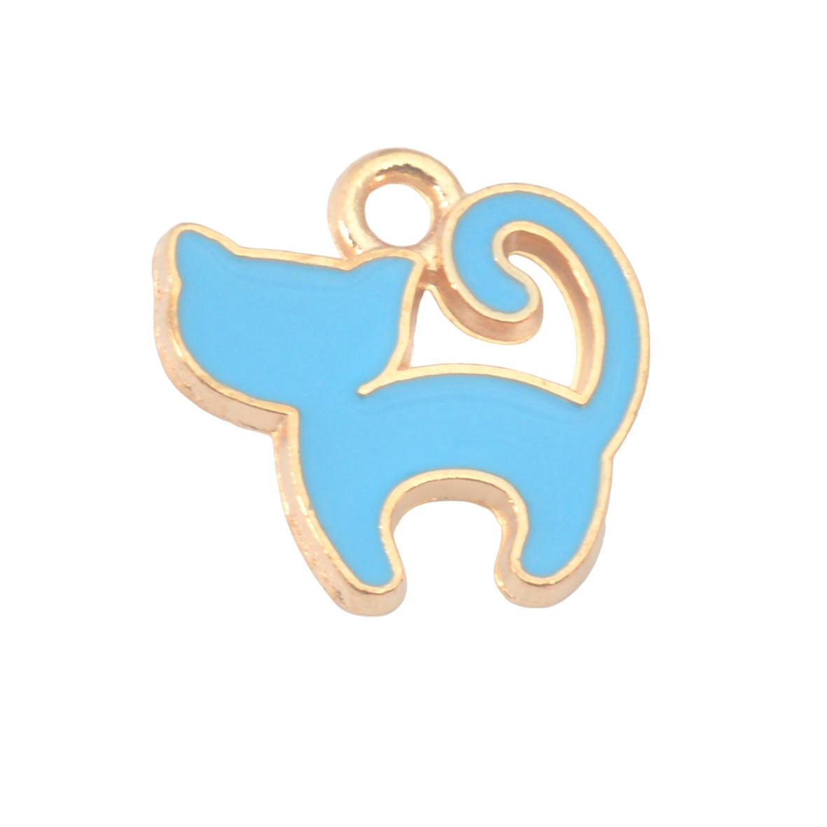 Goudkleurige/blauwe bedel – kat (13 mm)