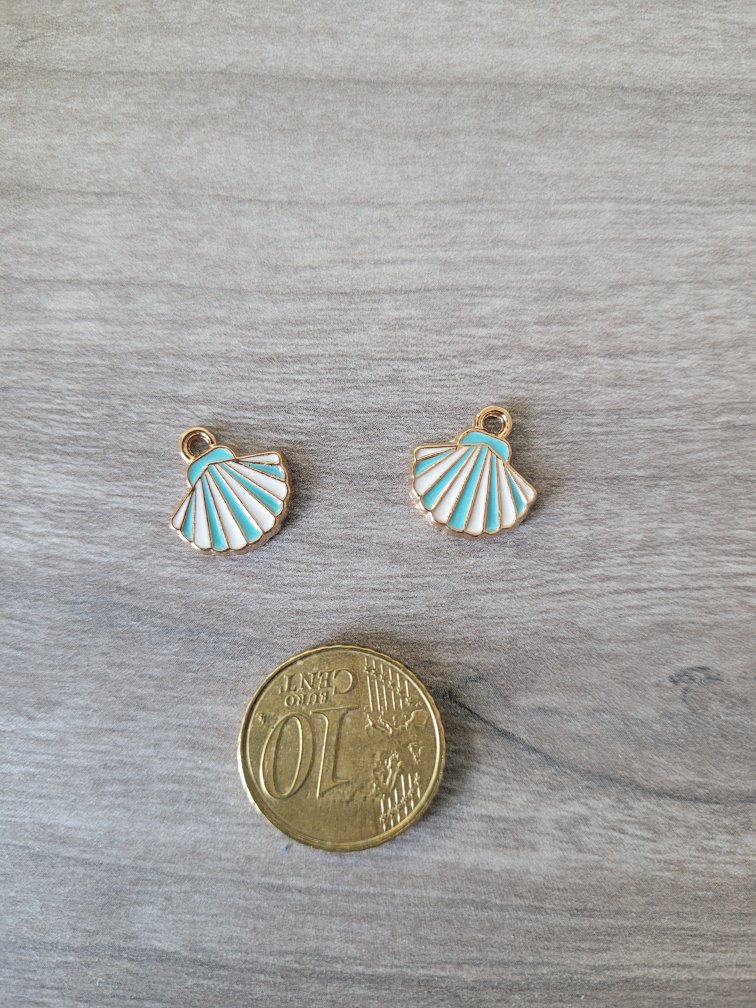 Goudkleurige/blauwe/witte bedel – schelp (13 x 14 mm)