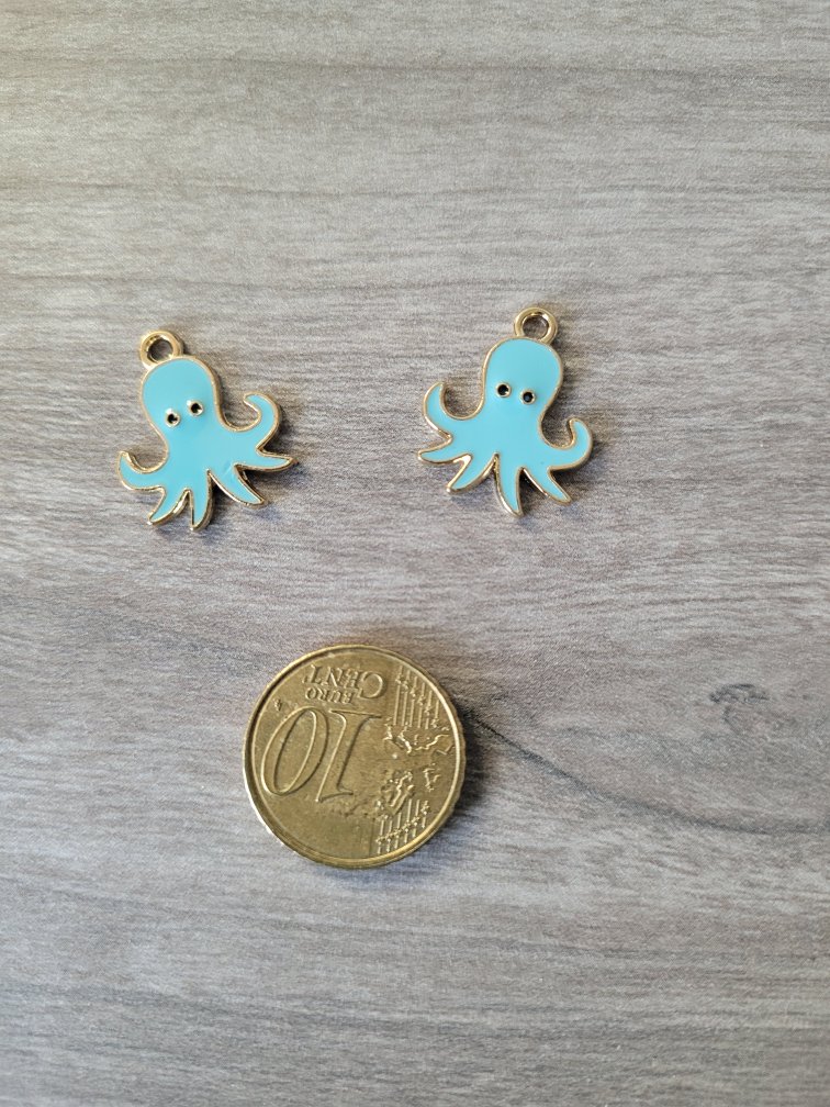 Goudkleurige/blauwe/zwarte bedel – octopus (16 x 20 mm)