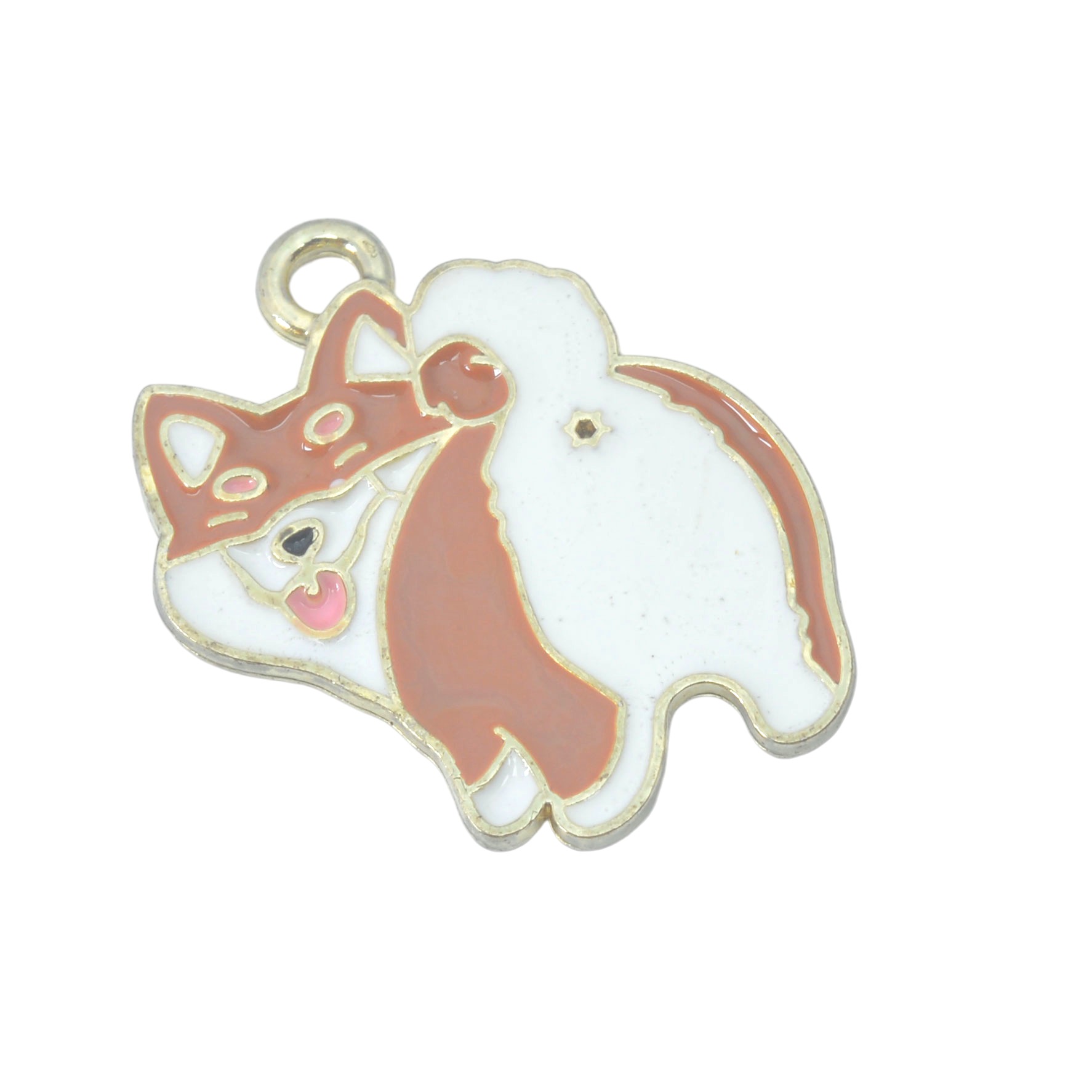 Goudkleurige/bruine/witte/roze bedel – hond (19 x 22 mm)