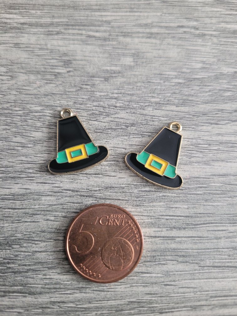 Goudkleurige/gele/groene/zwarte bedel/hanger – heksenhoed (18 x 20 mm)