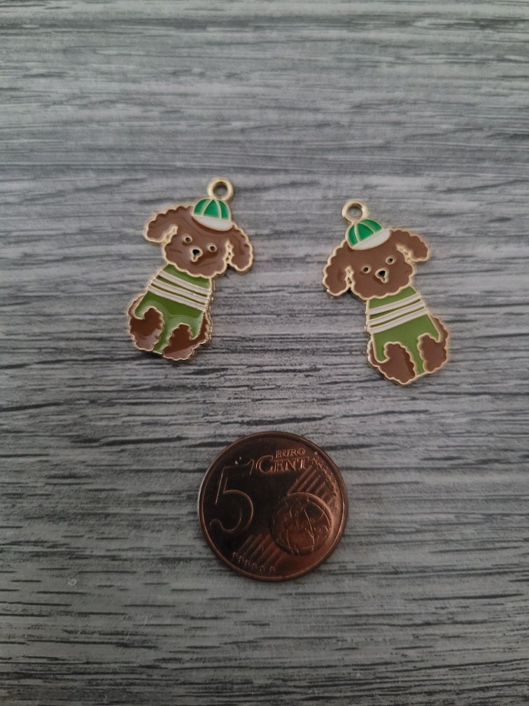 Goudkleurige/groene/bruine/witte/zwarte bedel – hond (17 x 28 mm)