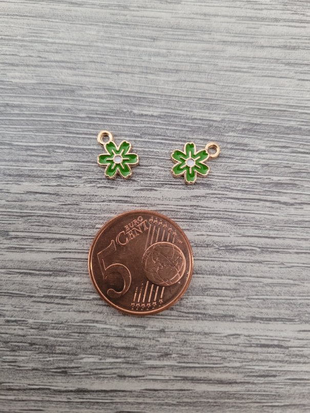 Goudkleurige/groene/witte bedel – bloem (8 x 11 mm)