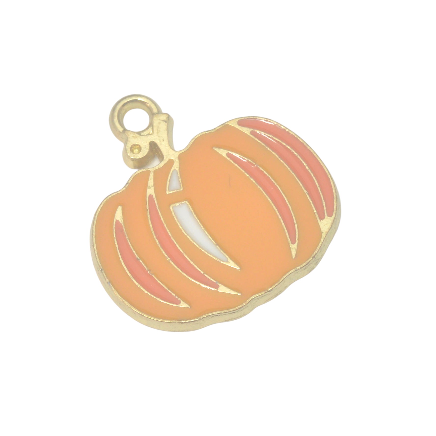 Goudkleurige/oranje/witte bedel/hanger – pompoen (18 x 19 mm)