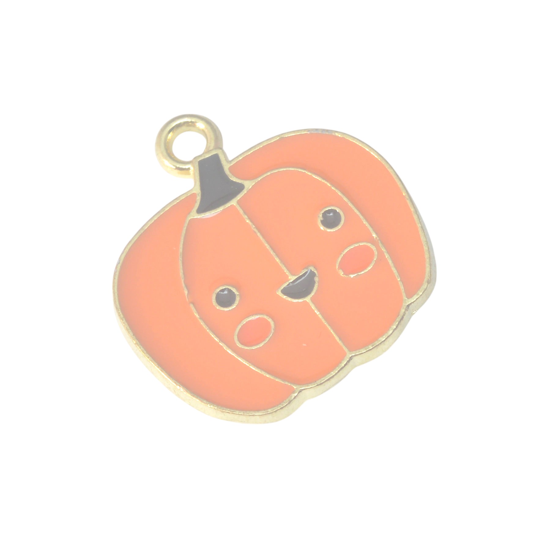 Goudkleurige/oranje/zwarte bedel/hanger – pompoen (18 x 19 mm)