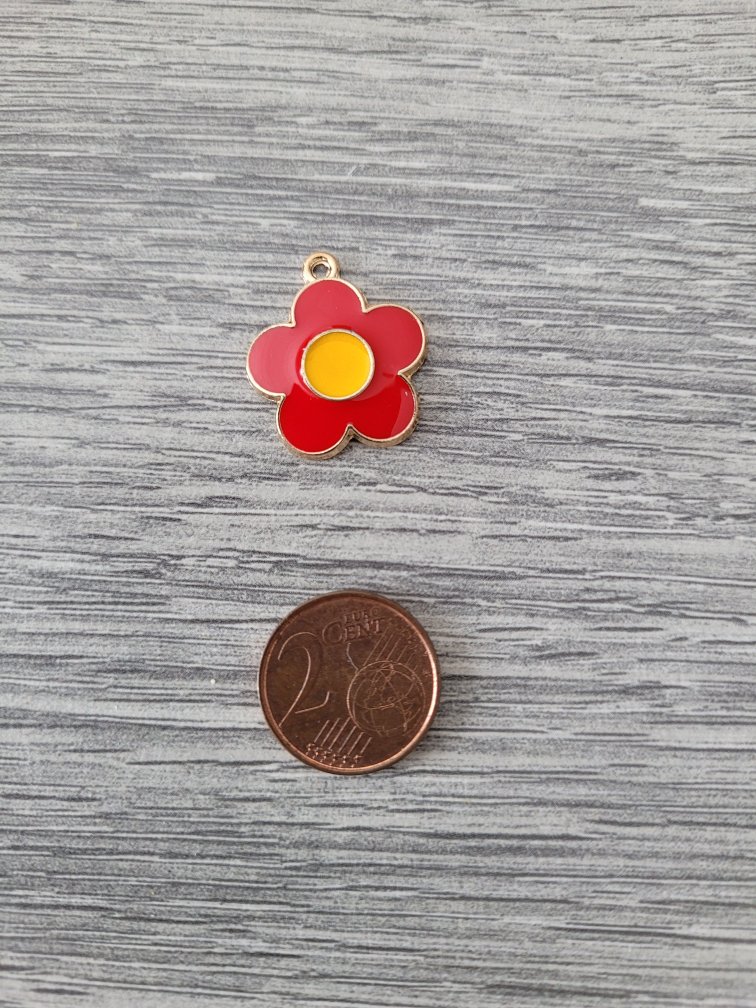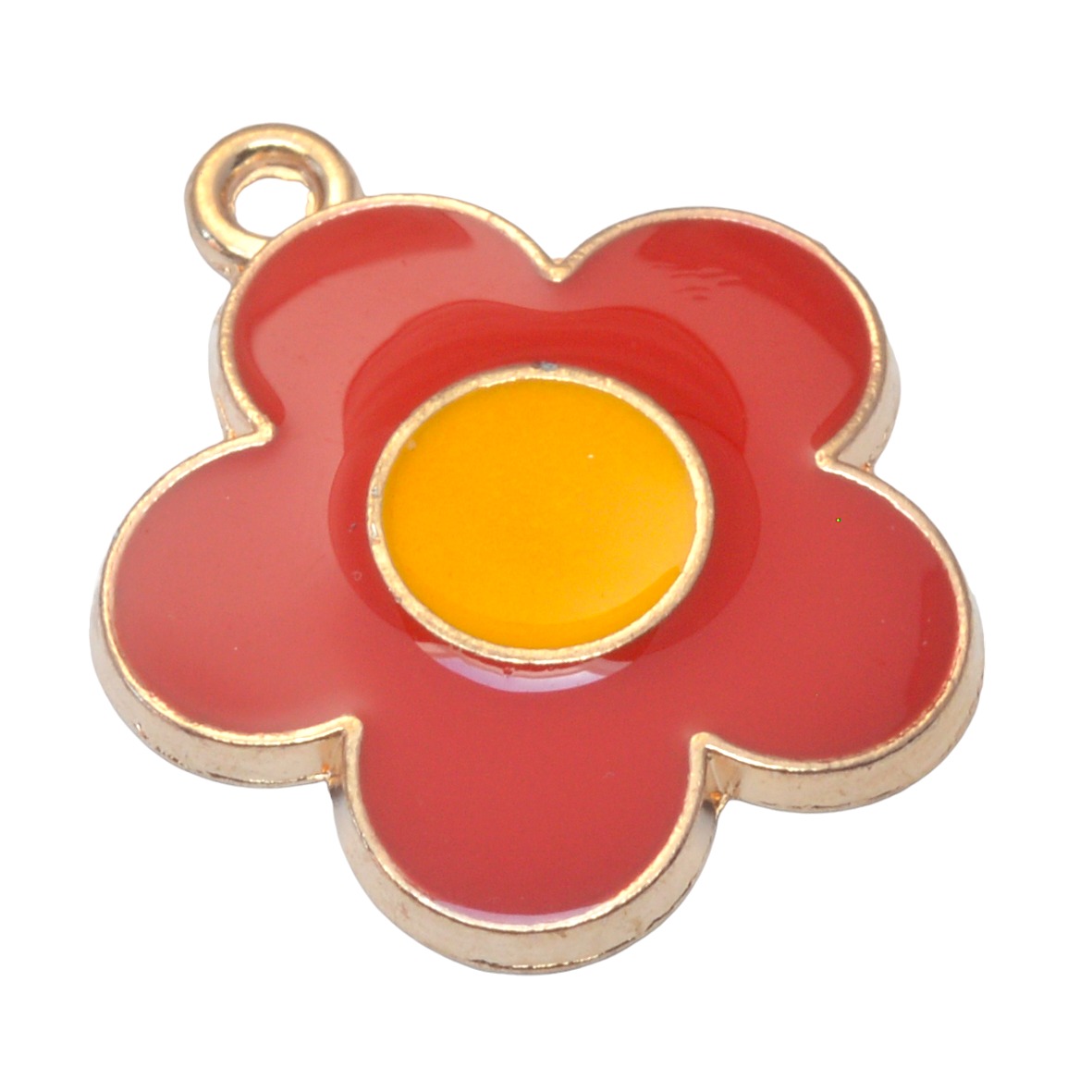 Goudkleurige/rode/oranje bedel – bloem (20 x 22 mm)