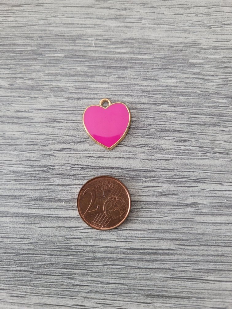 Goudkleurige/roze bedel – hart (18 x 19 mm)