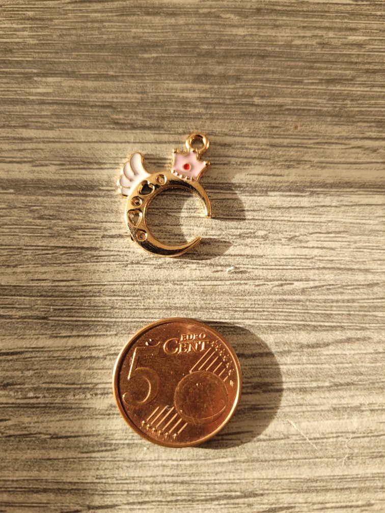 Goudkleurige/witte/roze/rode bedel – maan, kroon & vleugel (18 x 23 mm)