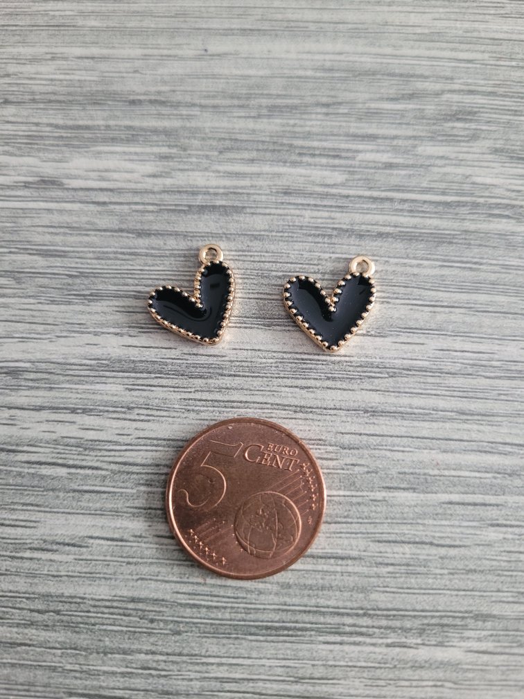 Goudkleurige/zwarte bedel/hanger – hart (12 x 13 mm)