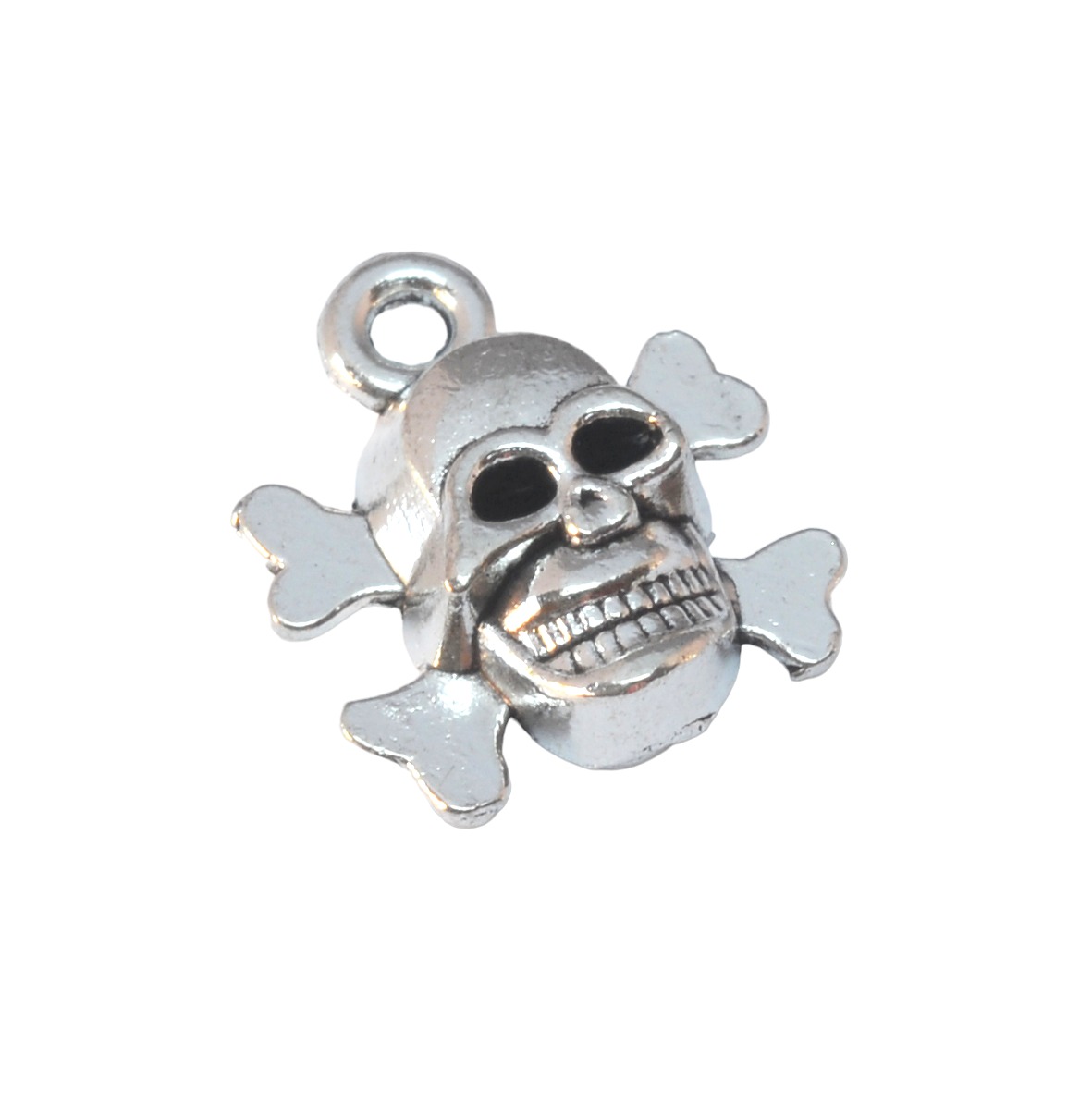 Zilverkleurige bedel – doodskop (13 x 15 mm)