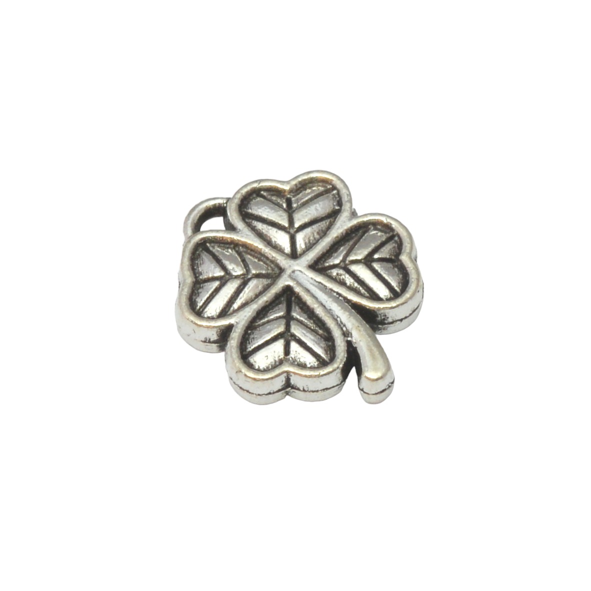 Zilverkleurige bedel – klavertje vier (11 x 13 mm)