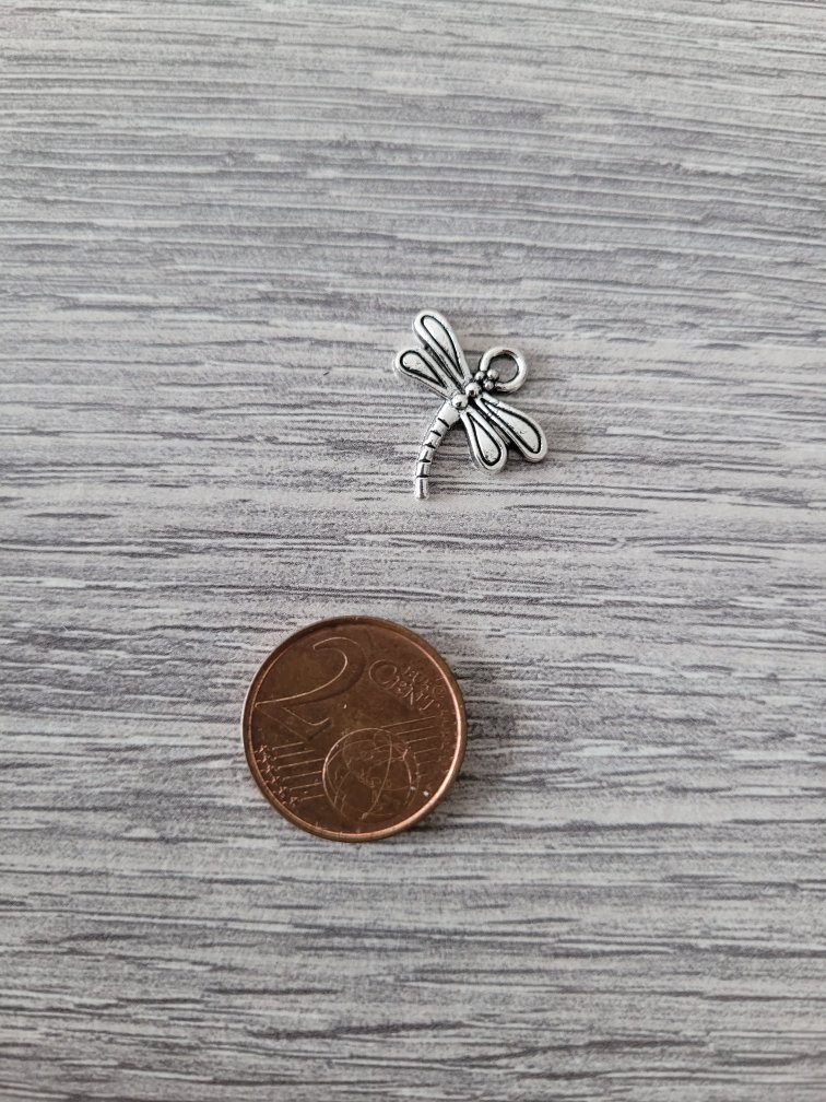 Zilverkleurige bedel – libelle (16 x 17 mm)