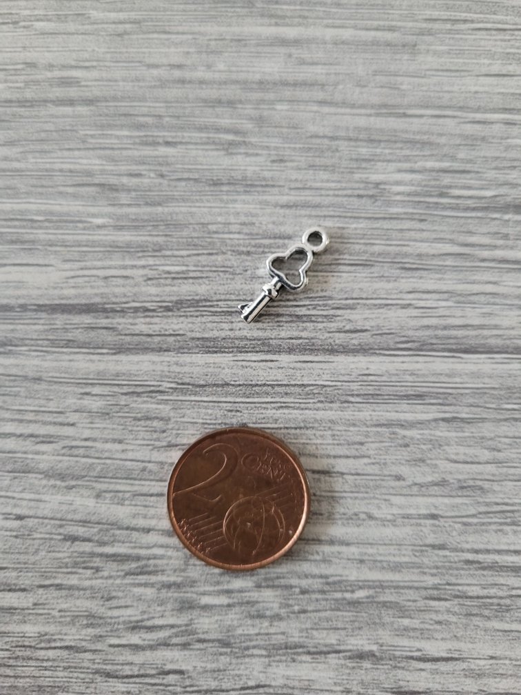 Zilverkleurige bedel – sleutel (6 x 16 mm)