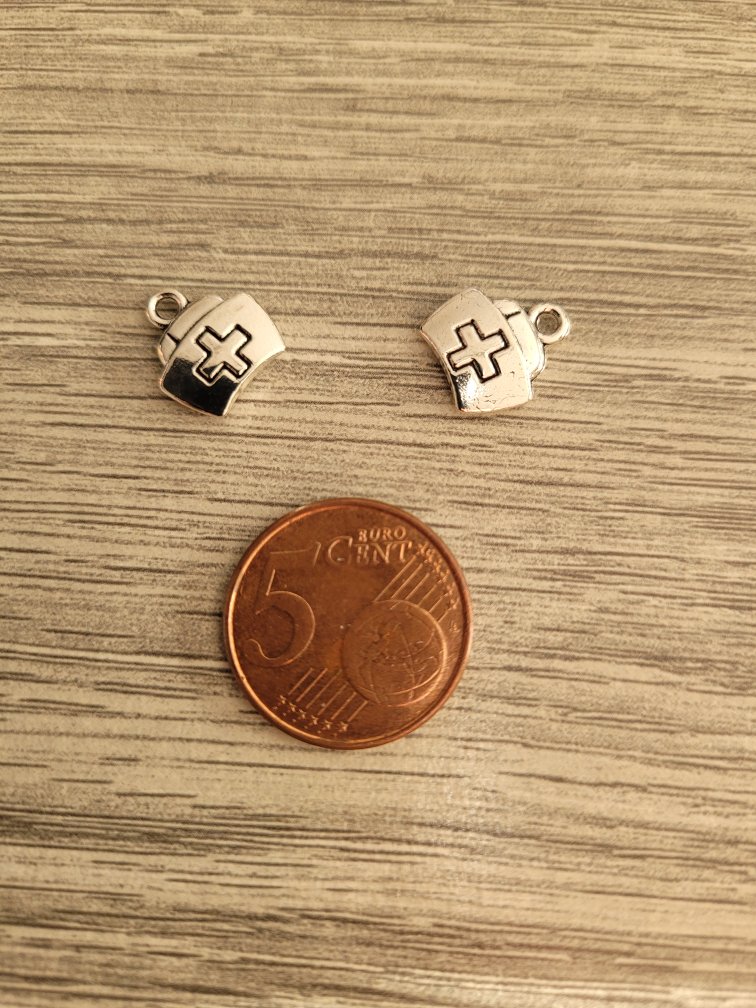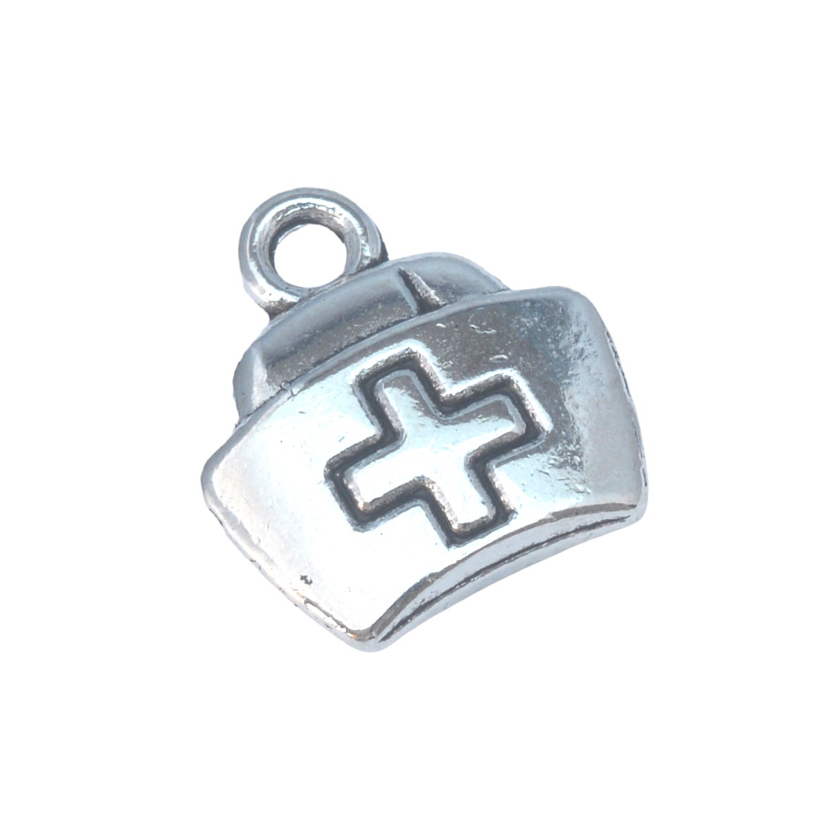 Zilverkleurige bedel – verpleegster hoedje (12 x 13 mm)