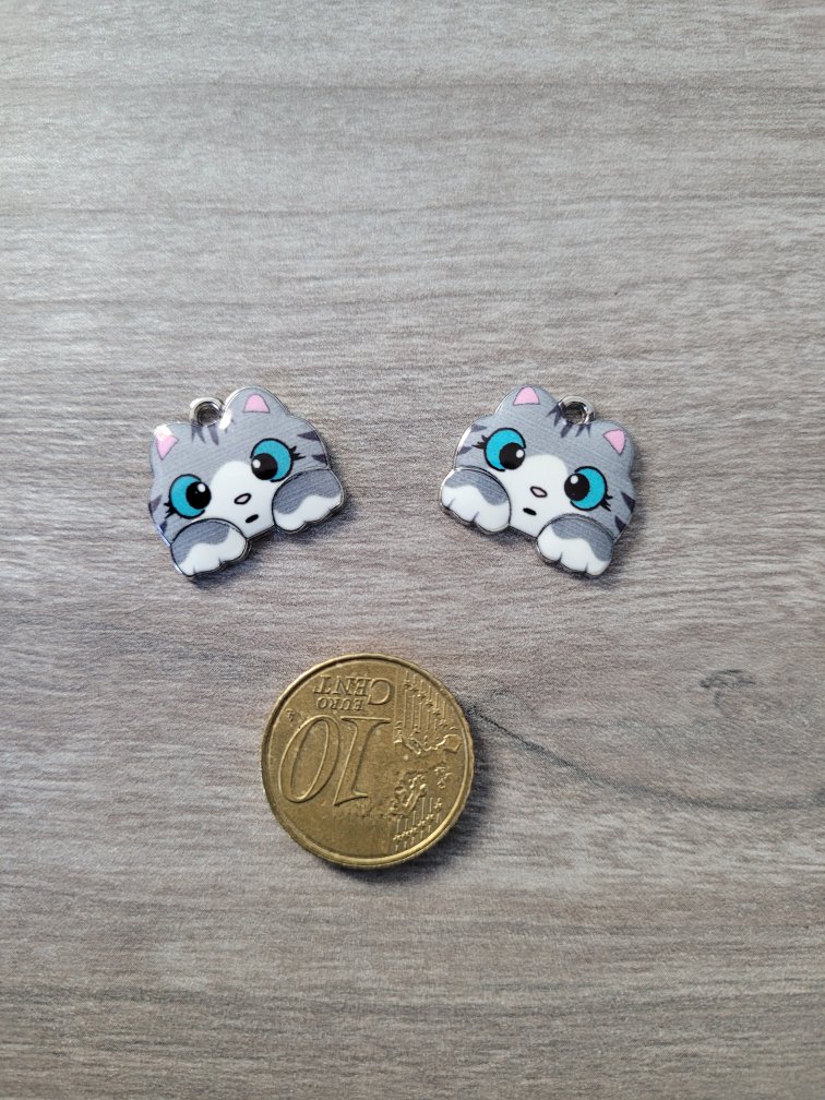 Zilverkleurige/grijze/roze/zwarte/witte bedel/hanger – kat (16 x 18 mm)