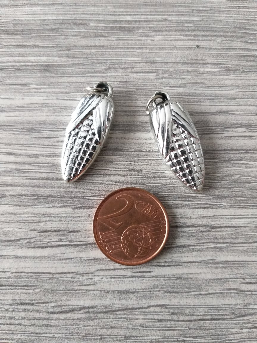 Zilverkleurige kunststof bedel mais (11 x 28 mm)