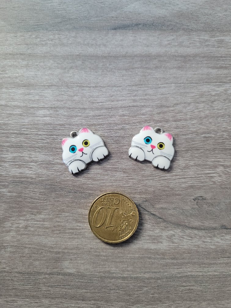 Zilverkleurige/witte/roze/blauwe/groene bedel/hanger – kat (16 x 18 mm)