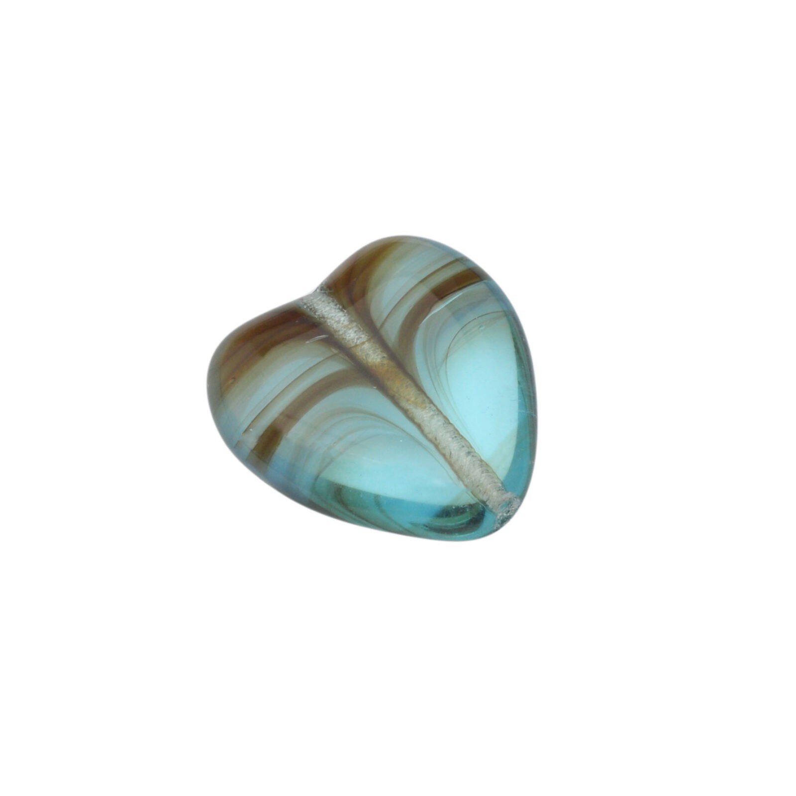 Blauwe/zwarte hartvormige glaskraal (15 x 16 mm)