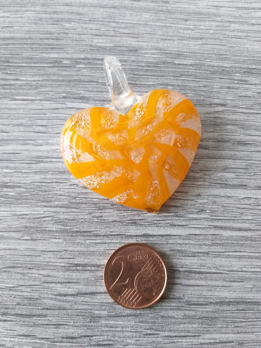 Oranje/witte hartvormige Venetiaanse glashanger (44 x 50 mm)