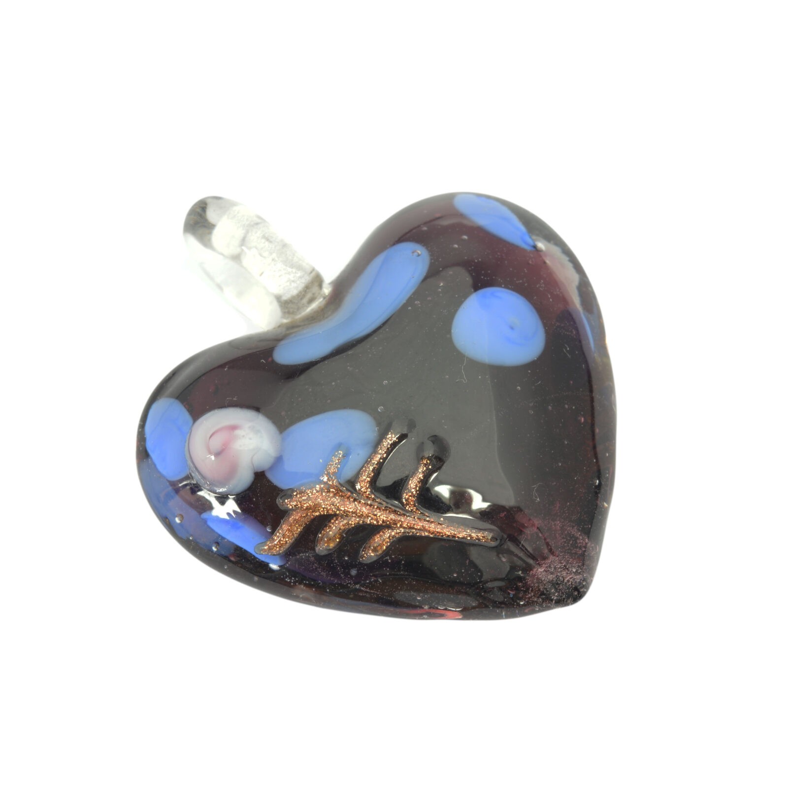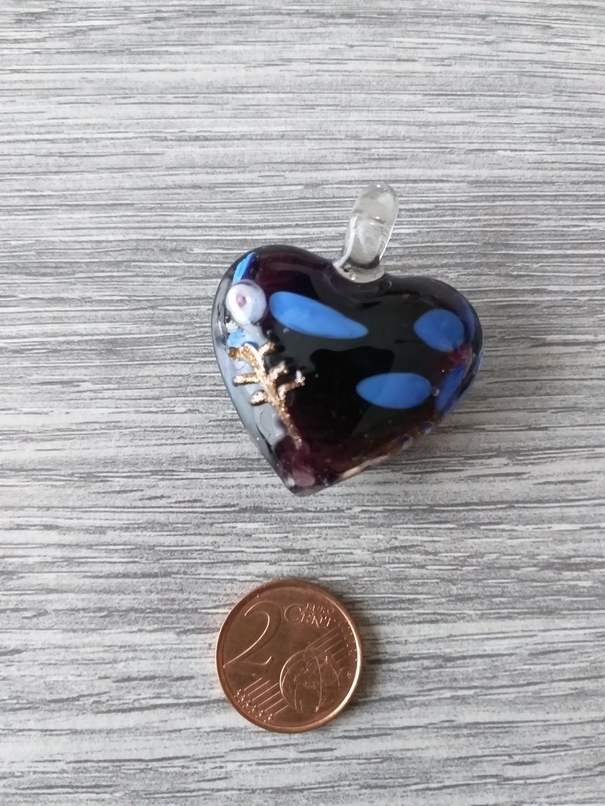 Paarse/blauwe/goudkleurige/witte Venetiaanse glashanger in de vorm van een hart (35 x 41 mm)