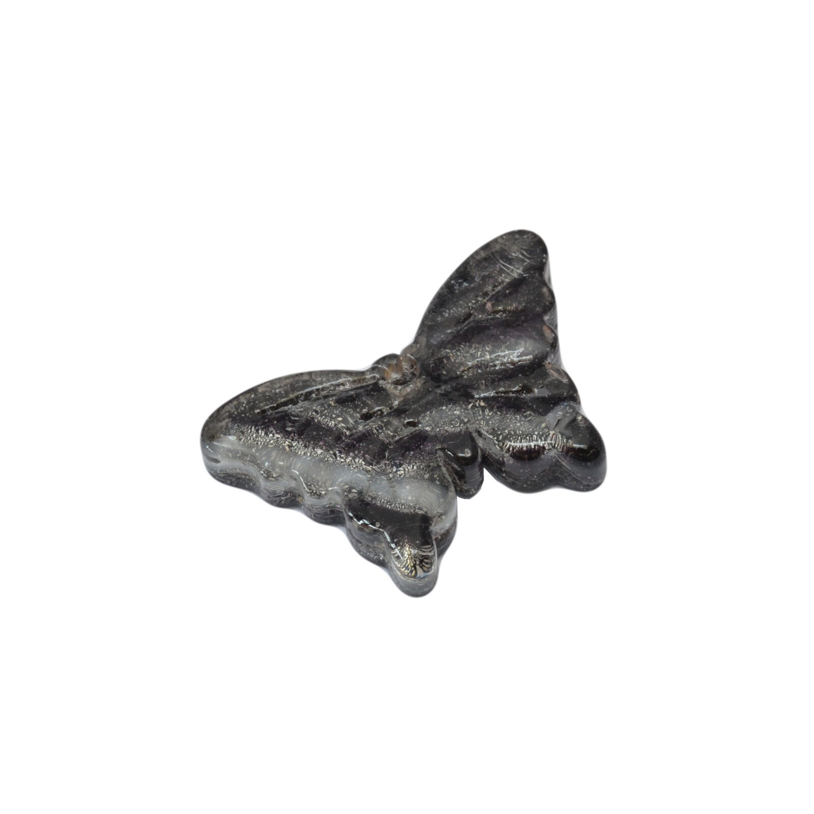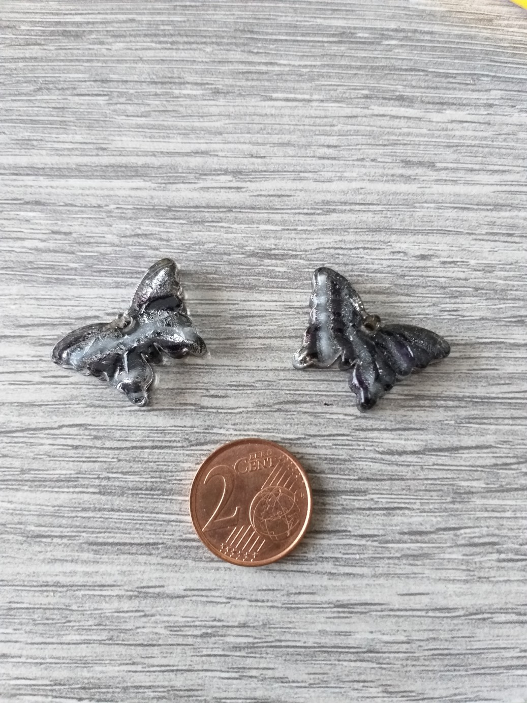 Zwarte/zilverkleurige Venetiaanse glaskraal in de vorm van een vlinder (16 x 25 mm)
