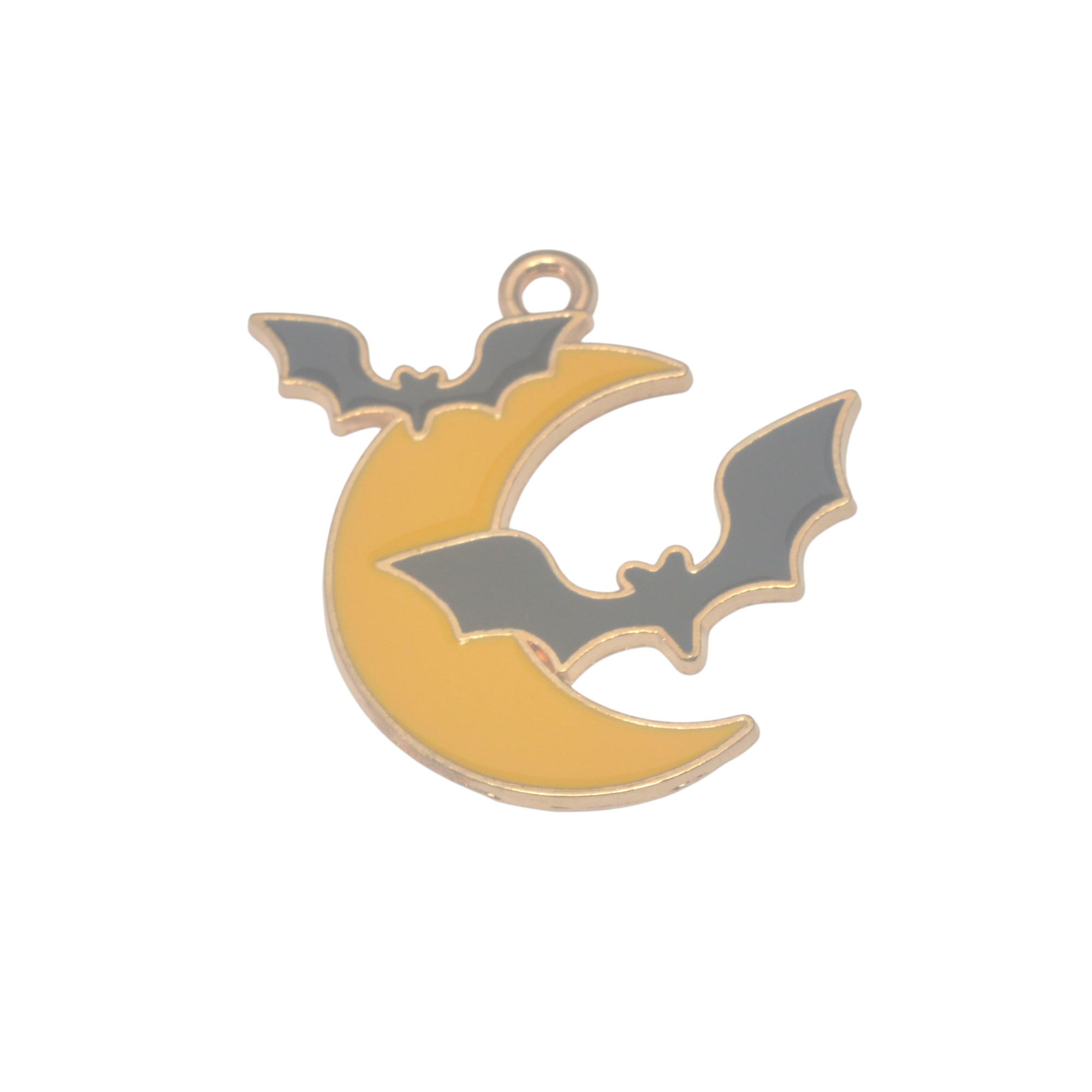 Goudkleurige/gele/zwarte hanger – maan & vleermuis (25 mm)