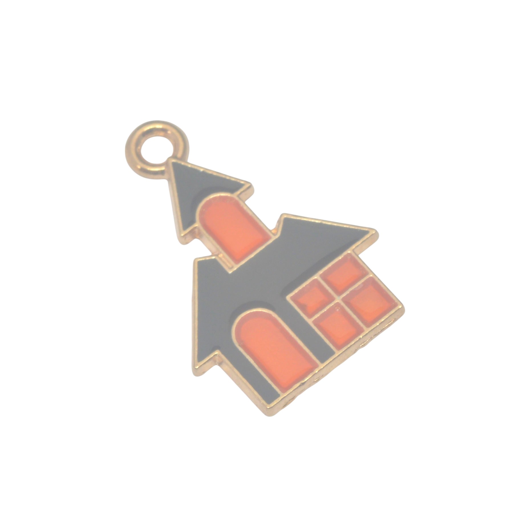 Goudkleurige/zwarte/oranje hanger – kasteel (15 x 22 mm)