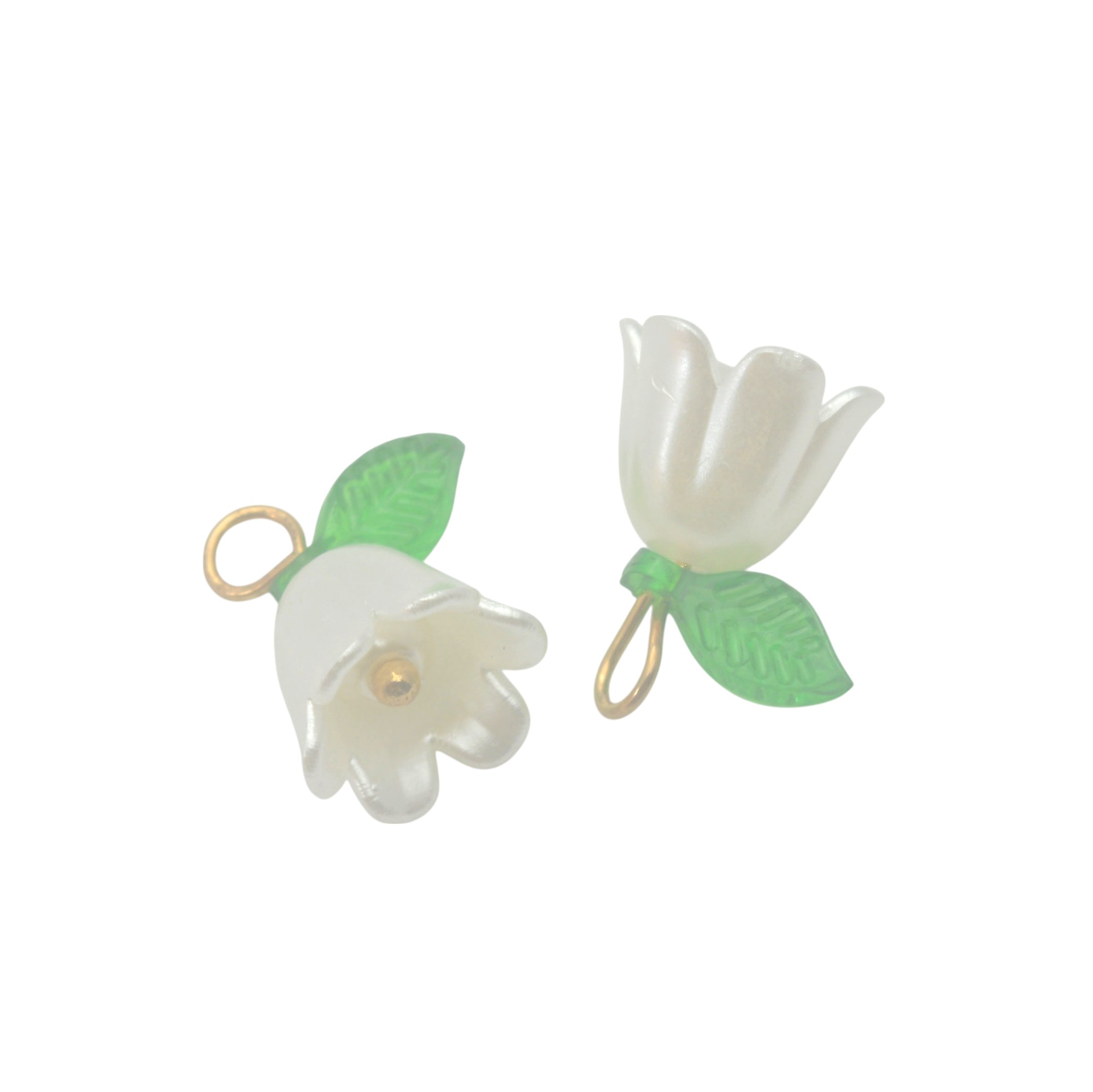 Witte/groene/goudkleurige hanger – bloem (11 x 16 mm)