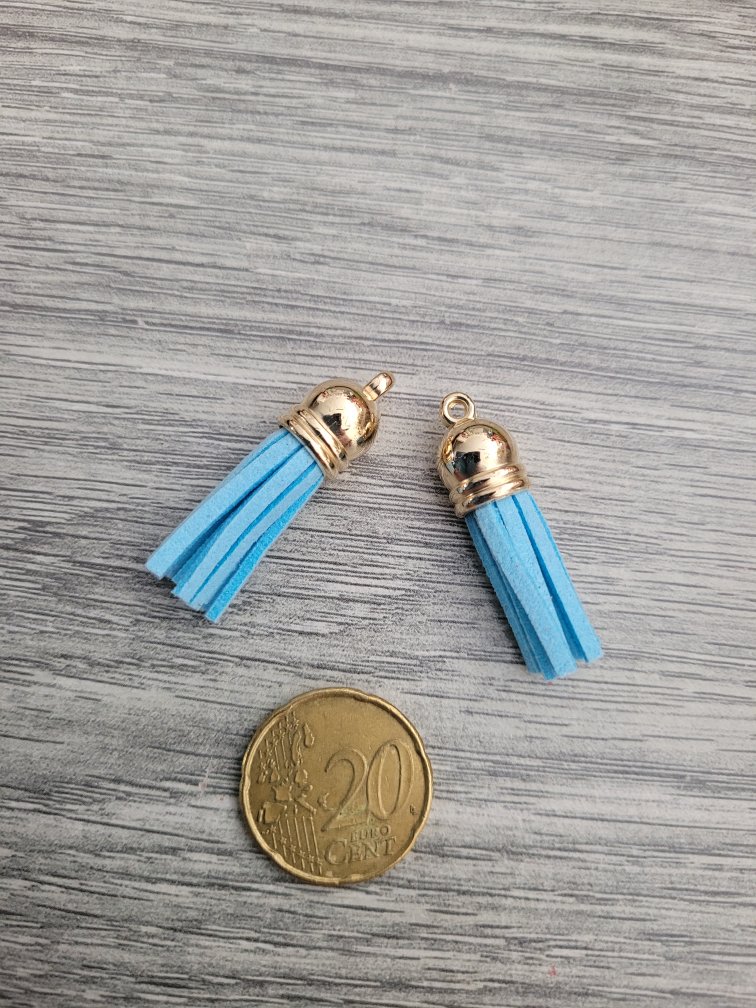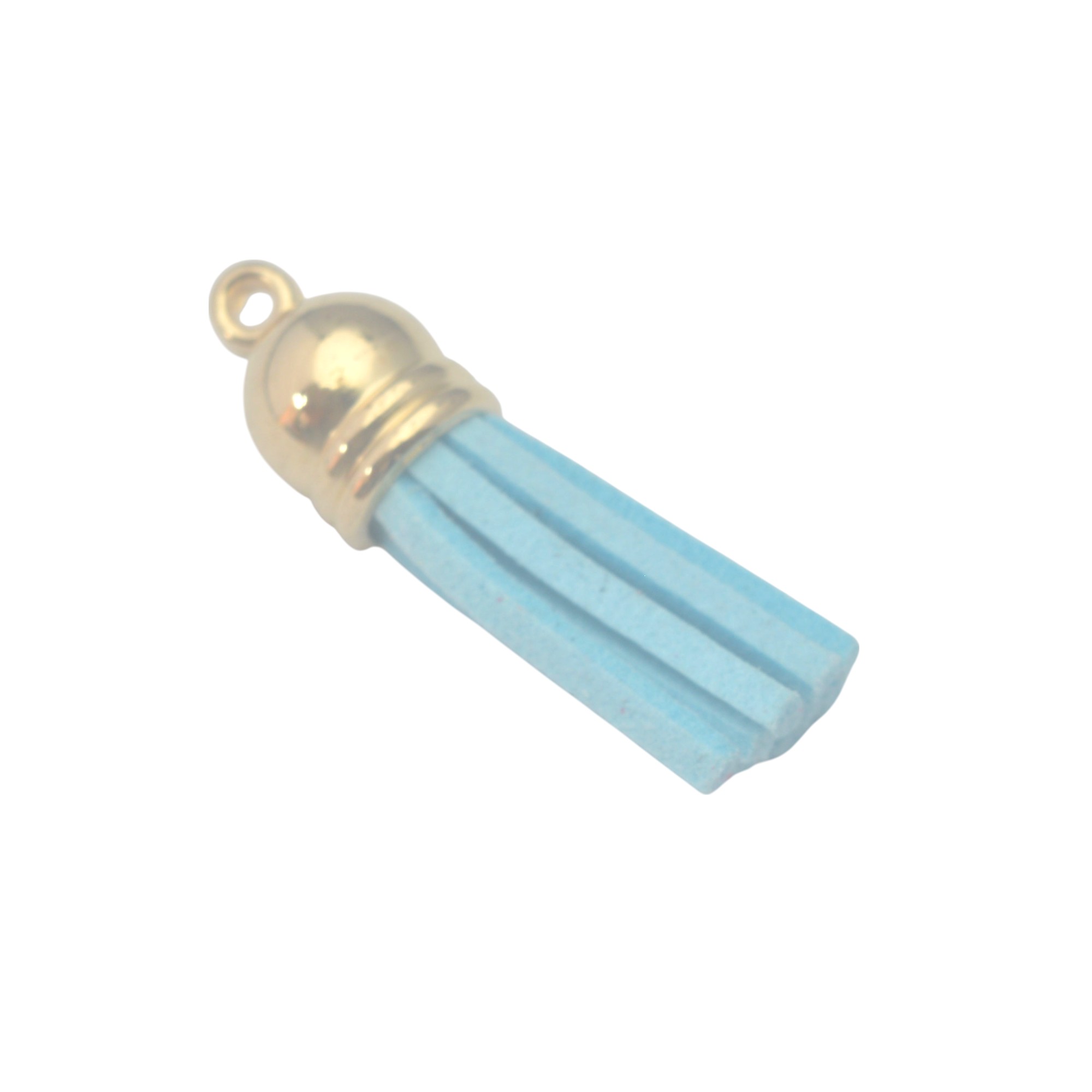 Lichtblauwe/goudkleurig kwastje (10 x 36 mm)