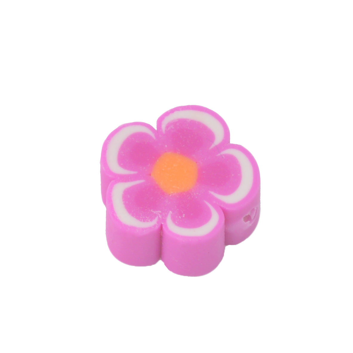 Paarse/witte/oranje polymeer kraal – bloem (9 mm)