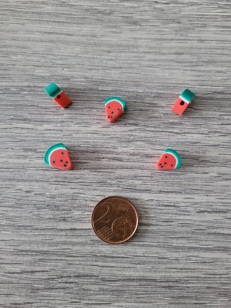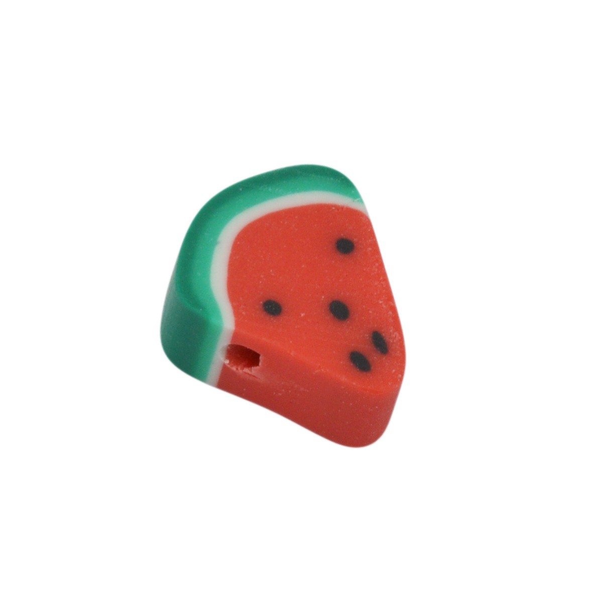 Rode/groene/witte en zwarte polymeer kraal in de vorm van een watermeloen (11 mm)